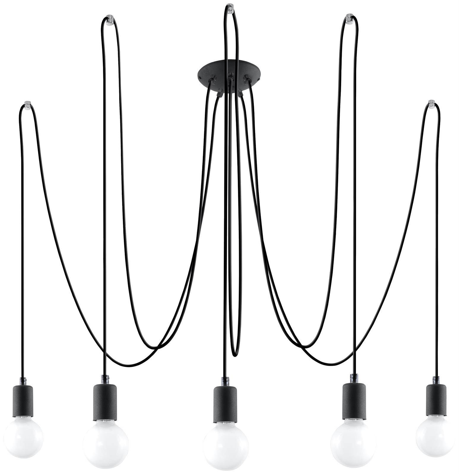 - Źródło światła: E27, 5x60W, 5x15W LED, 50-60Hz, ~220-230V, IP20, klasa ochronności IŹródło światła nie jest w komplecie.Wymiary: 300/300/150 cm [max. długość zawiesia 3 m]Materiał: tkanina, stalKolor: czarny