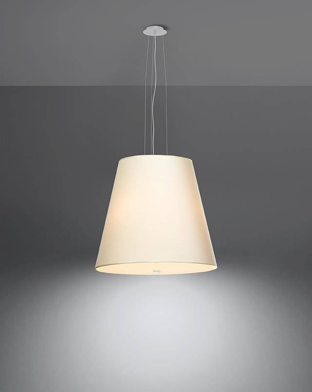 - Źródło światła: E27, 3x60W, 3x15W LED, 50-60Hz, ~220-230V, IP20, klasa ochronności IŹródło światła nie jest w komplecie.Wymiary: 50/50/140 cmWymiary klosza: 50/50 cmMateriał: tkanina, szkło, stalKolor: biały