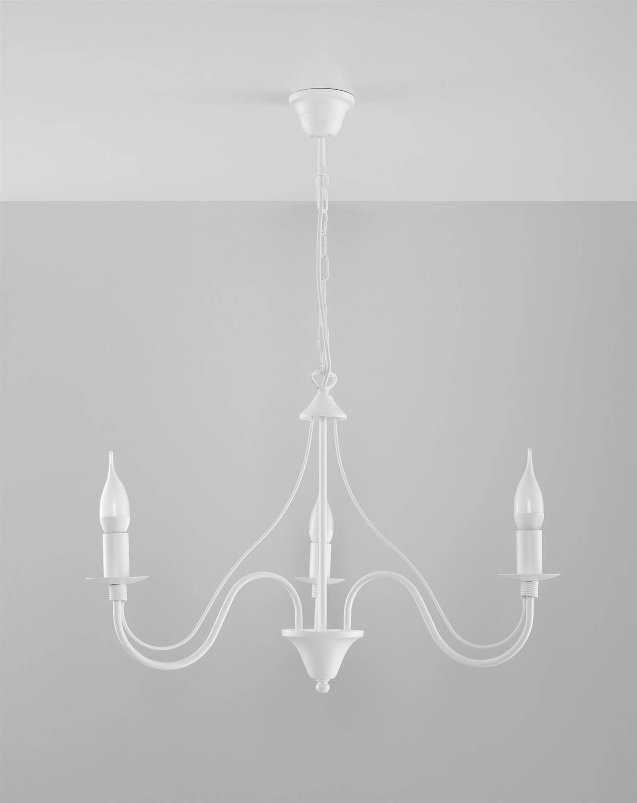 - Źródło światła: E14, 3x40W, 3x12W LED, 50-60Hz, ~220-230V, IP20, klasa ochronności IŹródło światła nie jest w komplecie.Wymiary: 60/60/80 cmMateriał: stalKolor: bialy