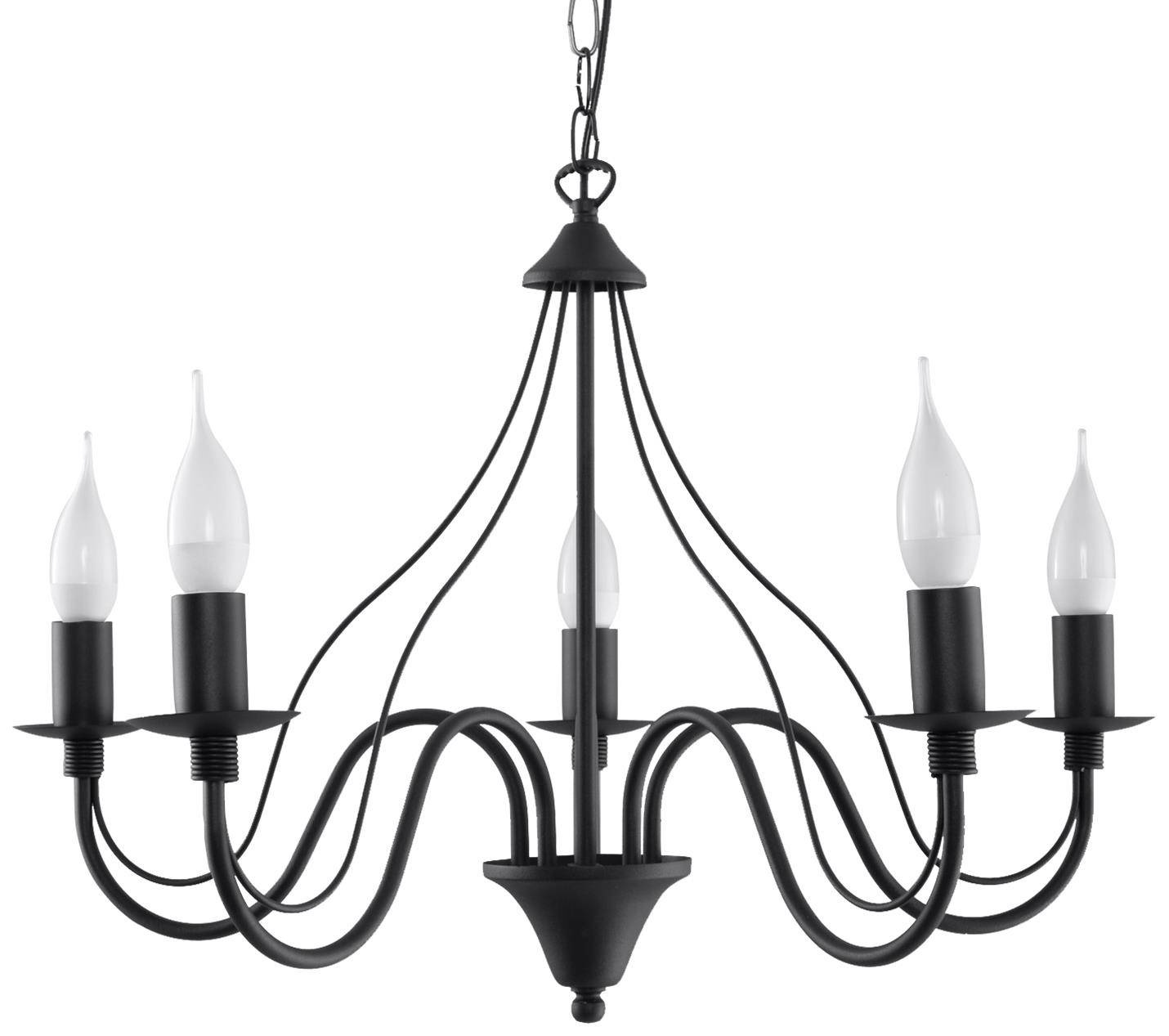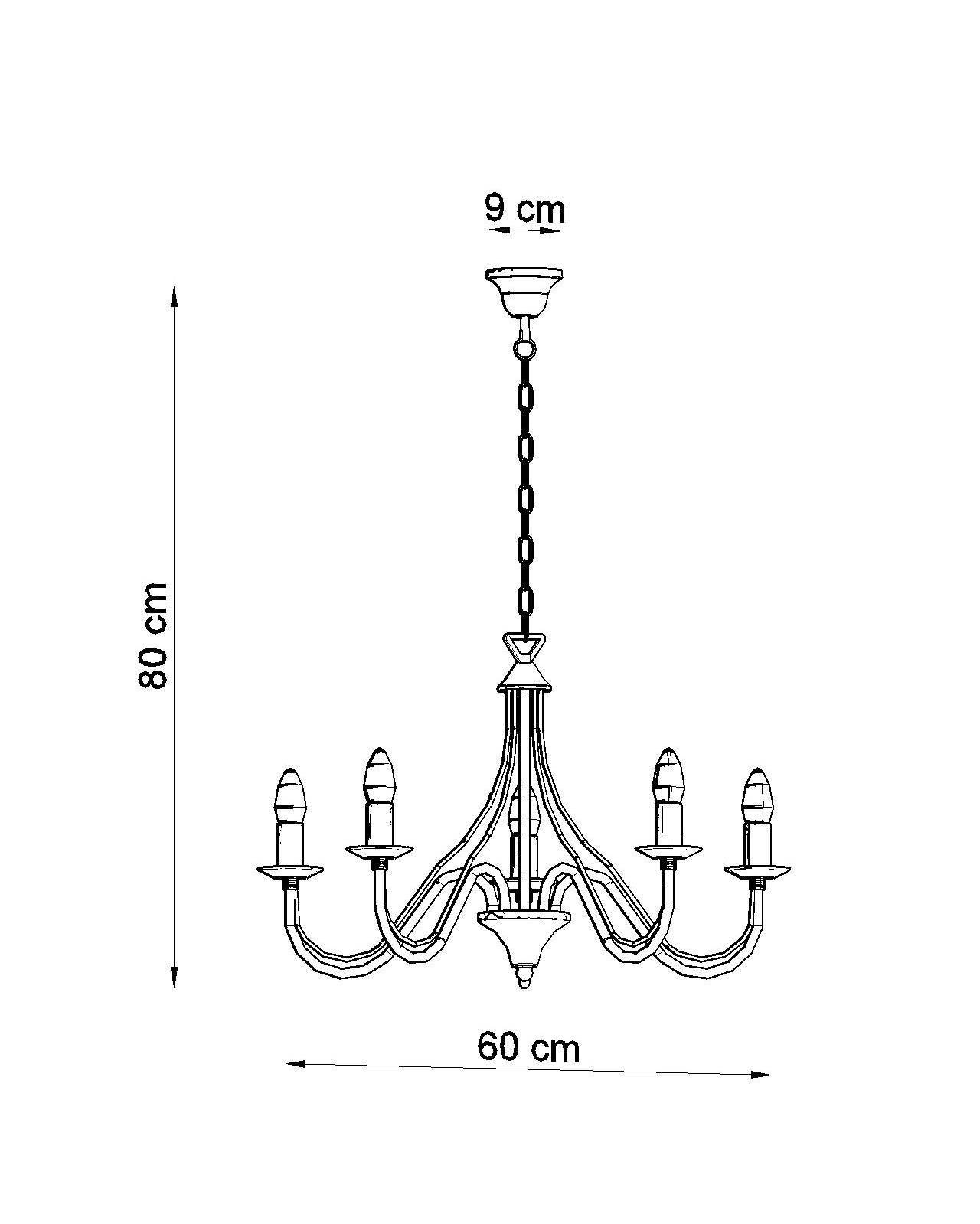 - Źródło światła: E14, 5x40W, 5x12W LED, 50-60Hz, ~220-230V, IP20, klasa ochronności IŹródło światła nie jest w komplecie.Wymiary: 60/60/80 cmMateriał: stalKolor: czarny