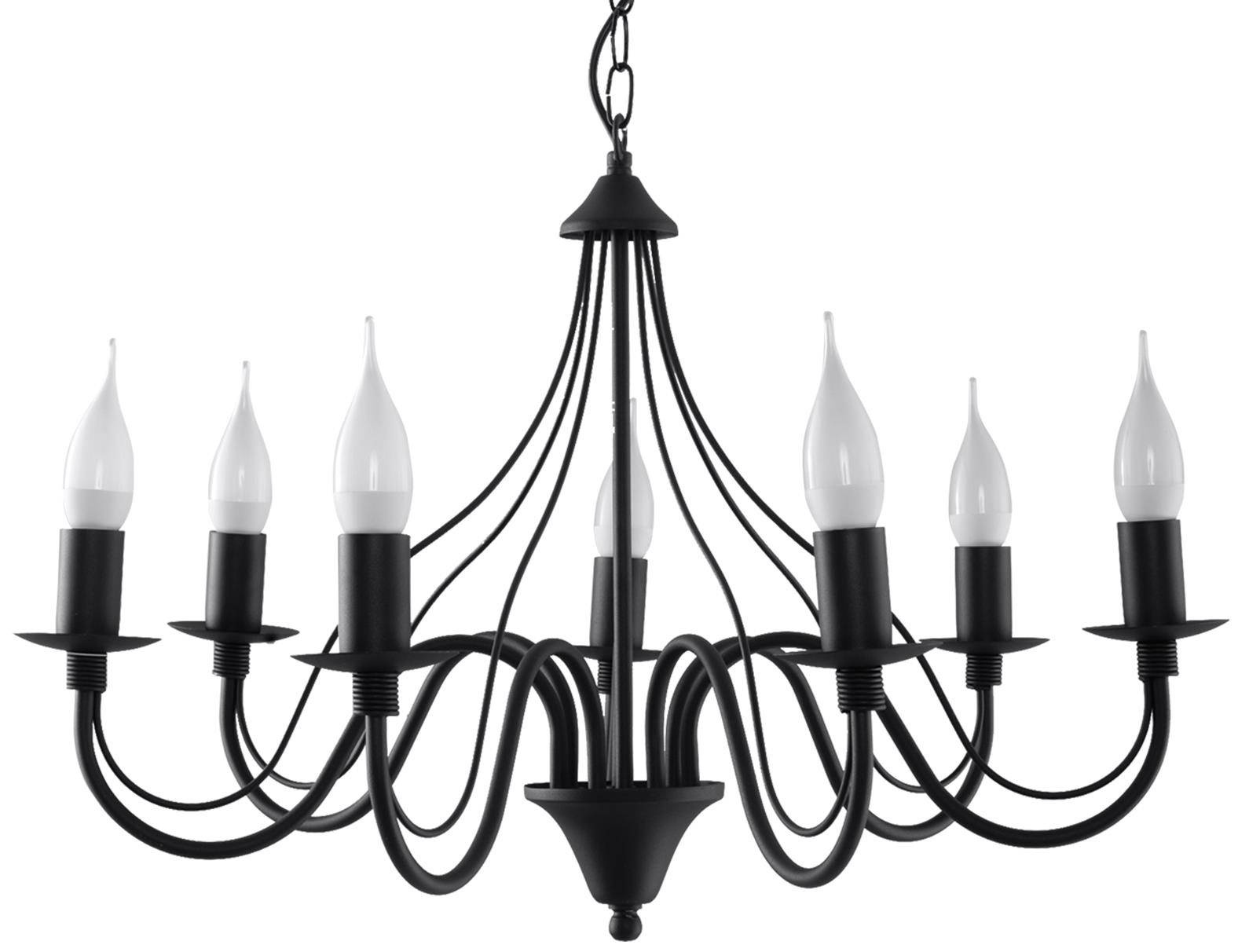 - Źródło światła: E14, 7x40W, 7x12W LED, 50-60Hz, ~220-230V, IP20, klasa ochronności IŹródło światła nie jest w komplecie.Wymiary: 60/60/80 cmMateriał: stalKolor: czarny