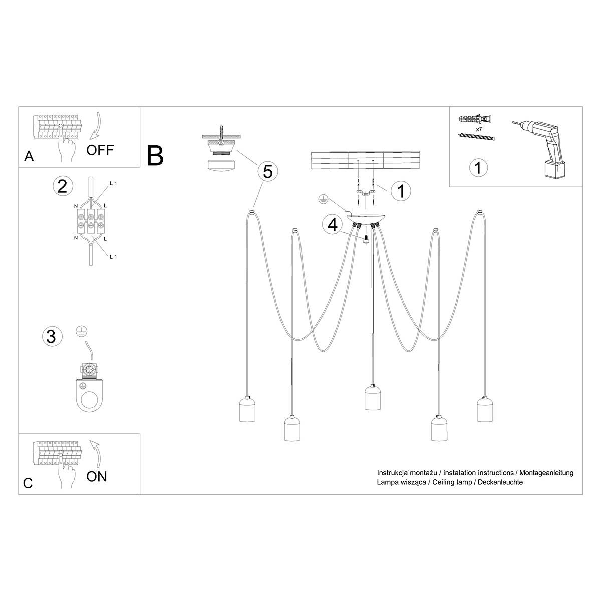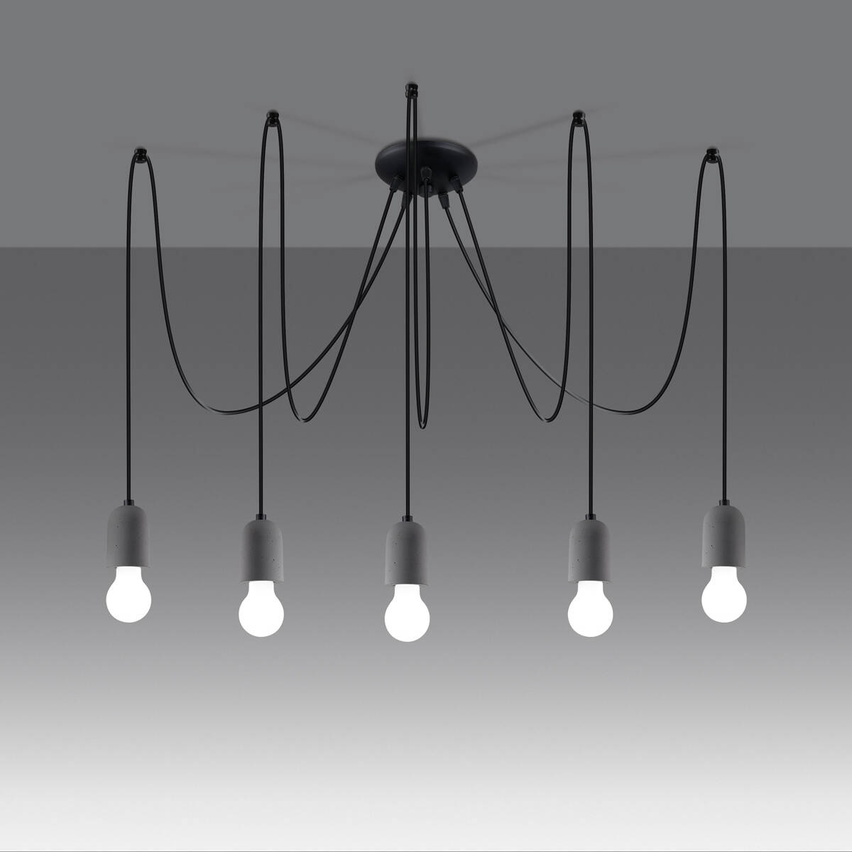 - Źródło światła: E27, 5x max 15 W LED, 50Hz, ~230V, IP20, klasa ochronności IŹródło światła nie jest w komplecie.Wymiary: 100/100/190 cmMateriał: PVC, betonKolor: szary, czarny