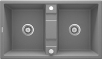 Zlewozmywak granitowy 2-komorowy szary metalik stal ZQE S203