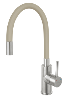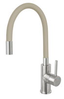 ZUMBA INOX bateria zlewozmywakowa z elastyczną beżową wylewką, stal szlachetna