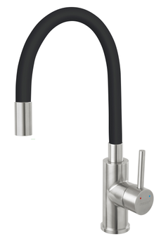 ZUMBA INOX bateria zlewozmywakowa z elastyczną czarną wylewką, stal szlachetna