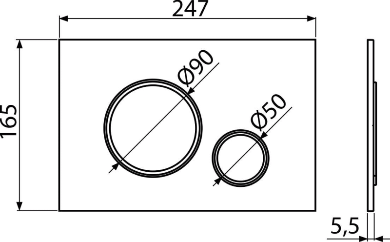 - Dzięki grubości 5,5 mm, przycisk wystaje nieznacznie ponad płytkę