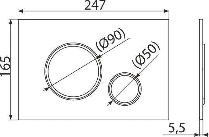 - Dzięki grubości 5,5 mm, przycisk wystaje nieznacznie ponad płytkę