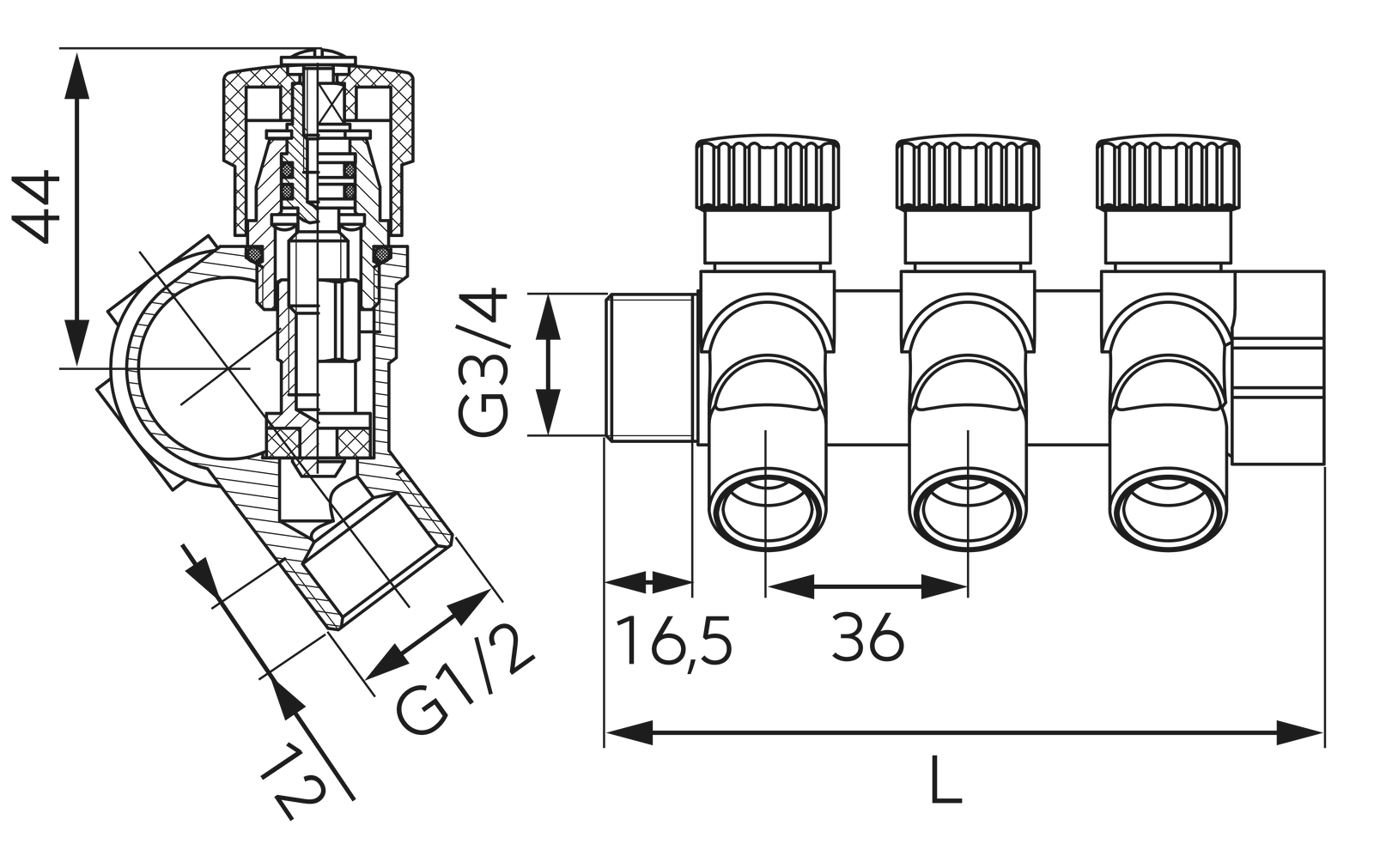 Rozdzielacz sanitarny 2-drogowy 3-4"x1-2"