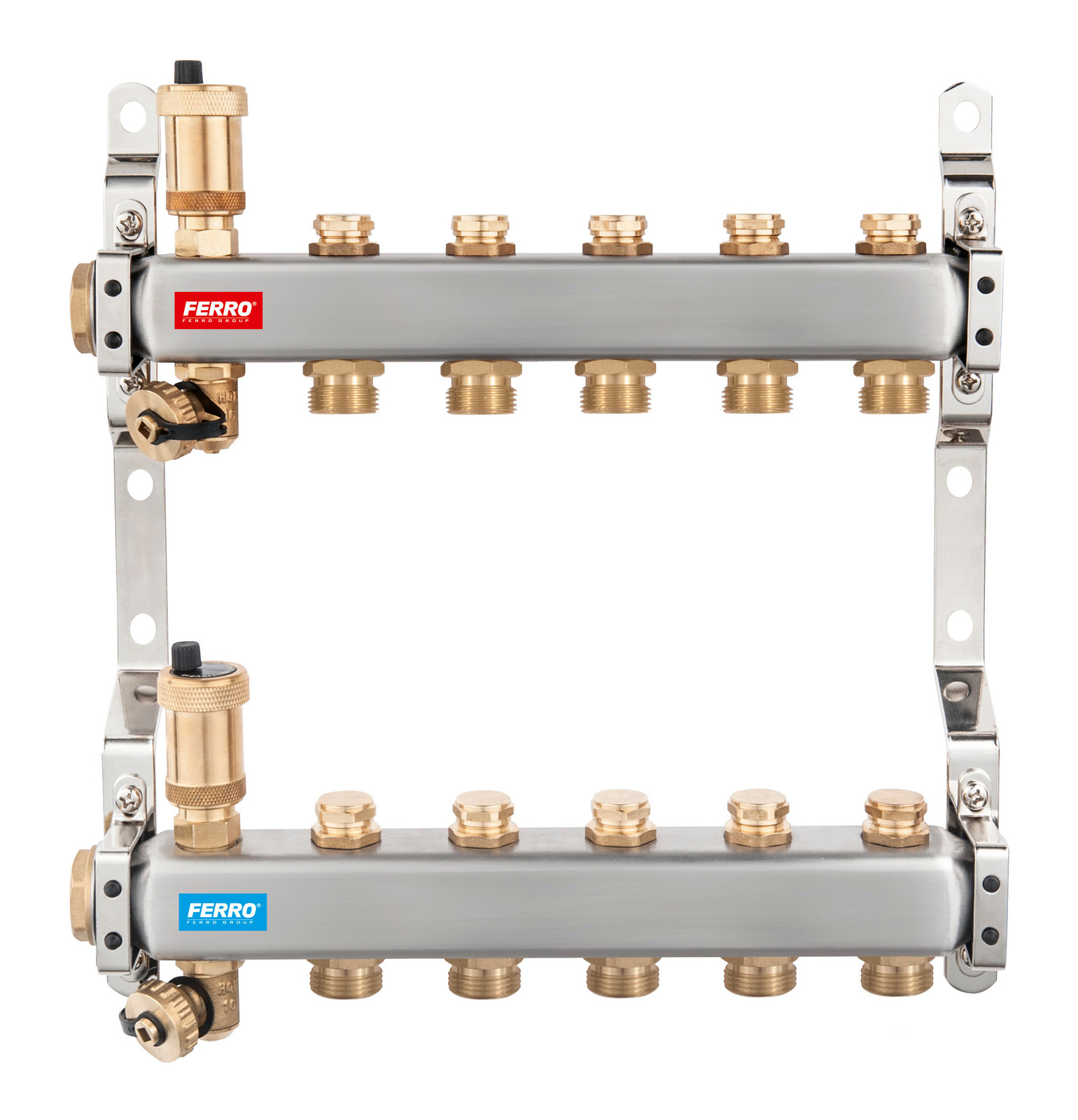 Rozdzielacz 5-drogowy z zaworami odcinającymi obwody, stal nierdzewna