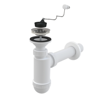 Syfon umywalkowy DN40, sitko nierdzewne DN63, korek z łańcuszkiem