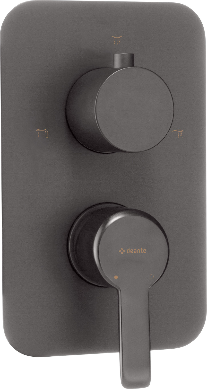 Element zewnętrzny to ostatnia i najbardziej widoczna część podtynkowej instalacji łazienkowej. Montowany jest w łatwy sposób na korpusie BOXu i może być dowolnie wymieniony w czasie zmiany aranżacji pomieszczenia, bez konieczności większego remontu. Składa się z rozety, przełącznika źródła wypływu oraz dźwigni baterii. Eleganckie, minimalistyczne wykończenie jest spójne z pozostałymi elementami kolekcji i tworzy harmonijną całość. Tradycyjne kształty bez zakamarków ułatwiają również sprzątanie. Element zewnętrzny dedykowany jest do BOXu mieszaczowego. Składa się z rozety, przełącznika funkcji i dźwigni baterii.