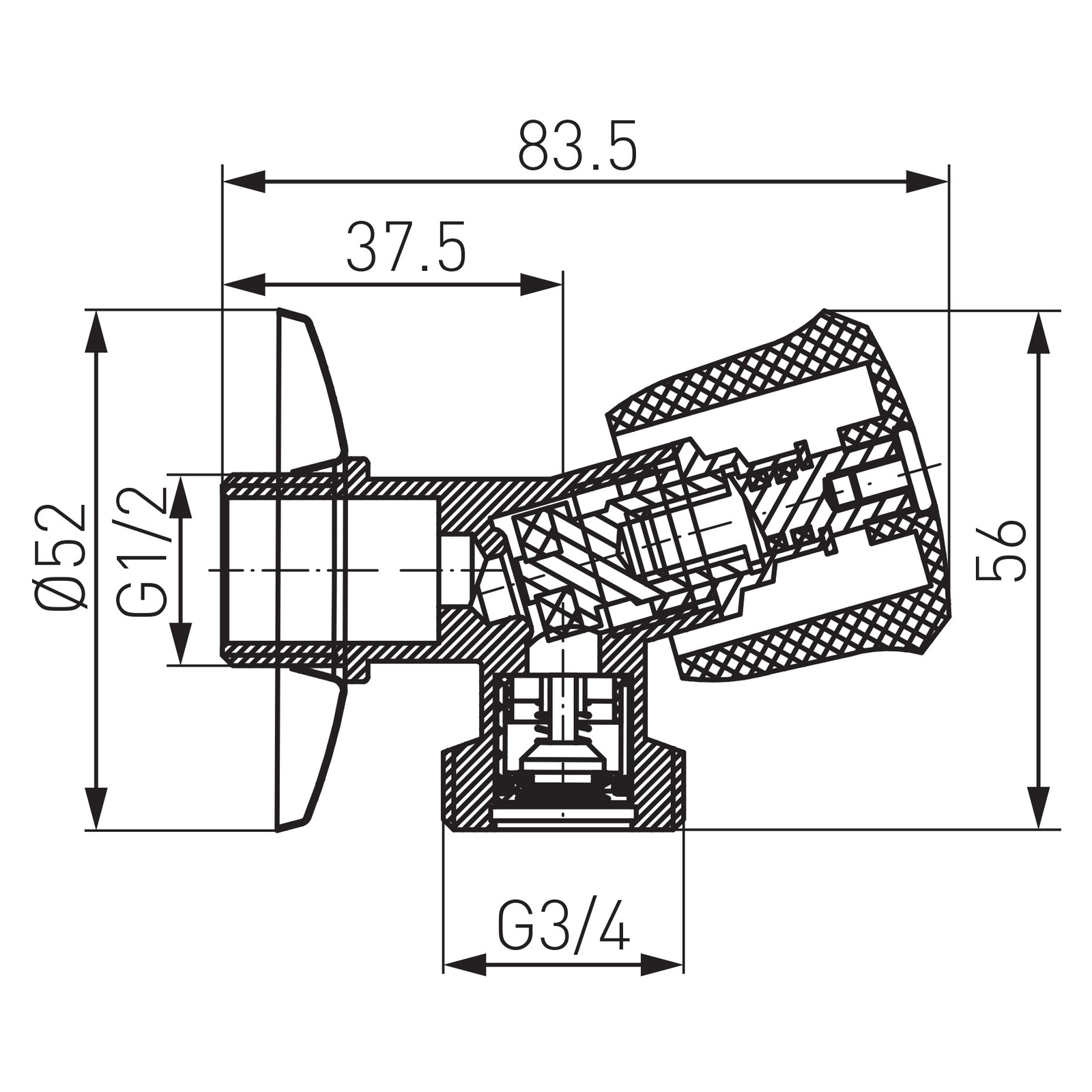 Zawór grzybkowy kątowy z rozetą, z zaworem zwrotnym 1-2"x3-4"