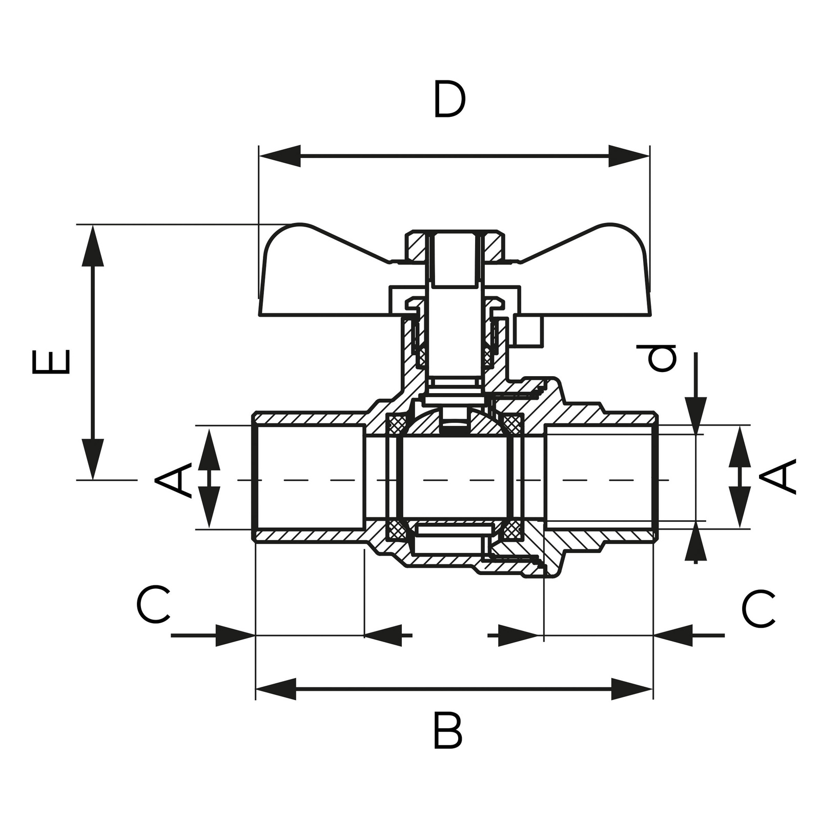 Zawór kulowy do wlutowania, z motylkiem, 22 mm, F-Power