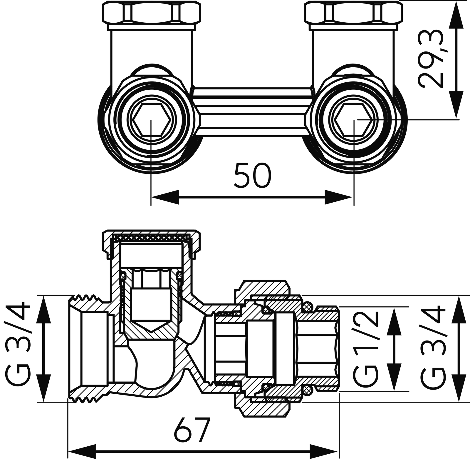 Zawór przyłączeniowy do grzejników dolnozasilanych z nyplami prosty