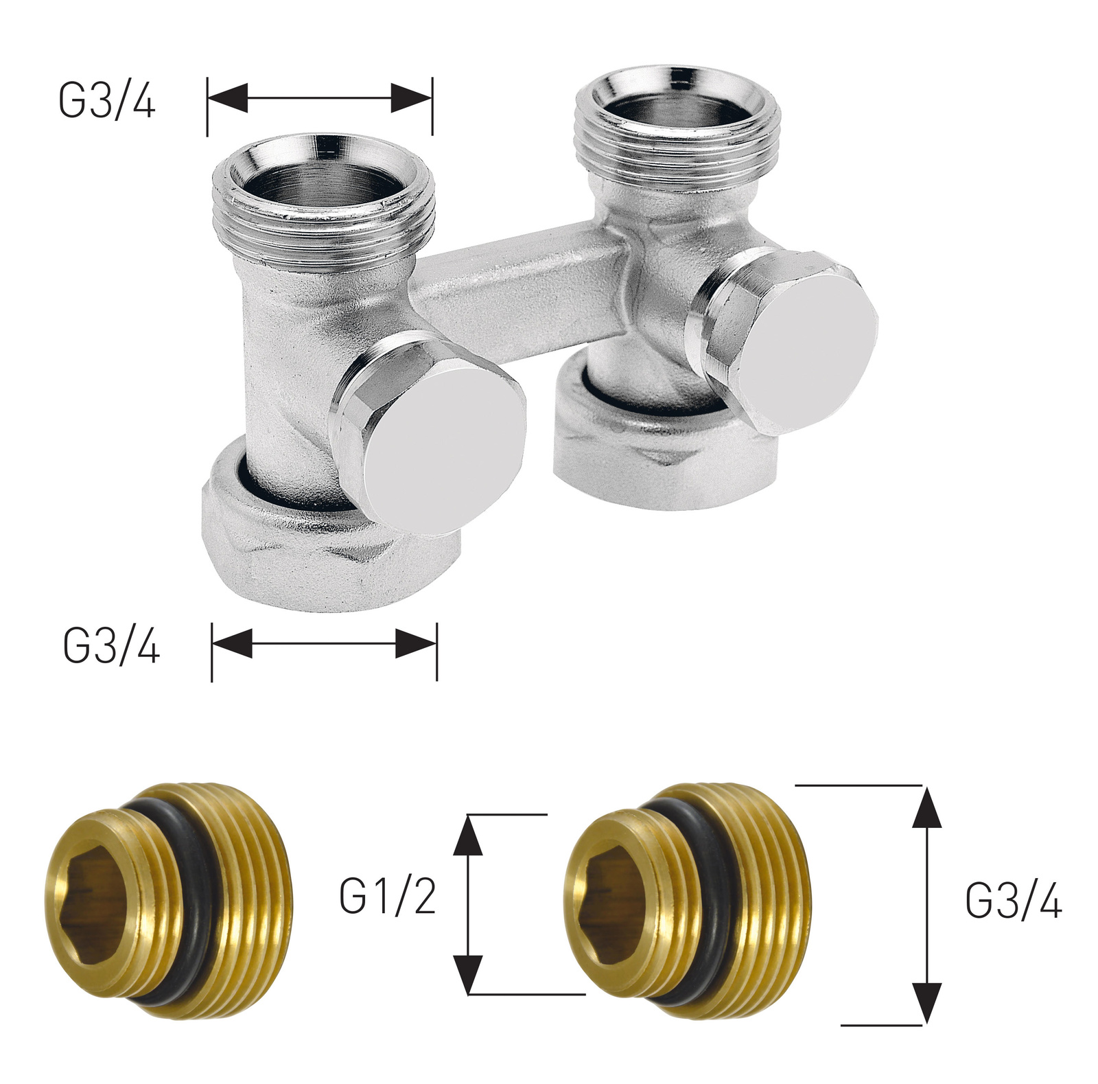 przyłącza GZ 3/4” x GW 3/4” lub GZ 3/4” x GZ 1/2” – nyple redukcyjne w zestawie