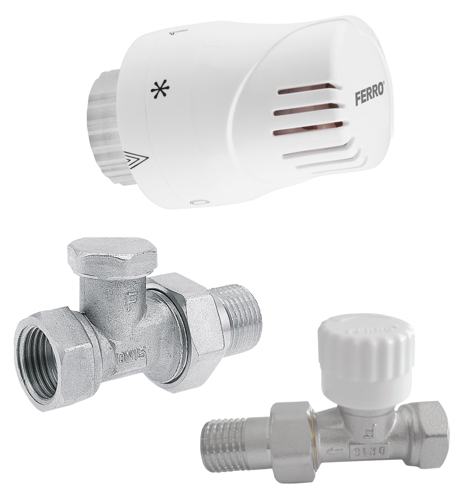 Zestaw termostatyczny prosty z zaworem z nastawą wstępną 1-2"