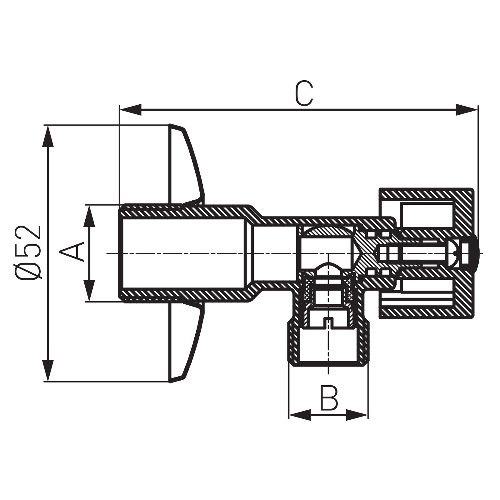 Zawór kulowy kątowy z metalowym uchwytem, z rozetą 1-2" x 3-4"