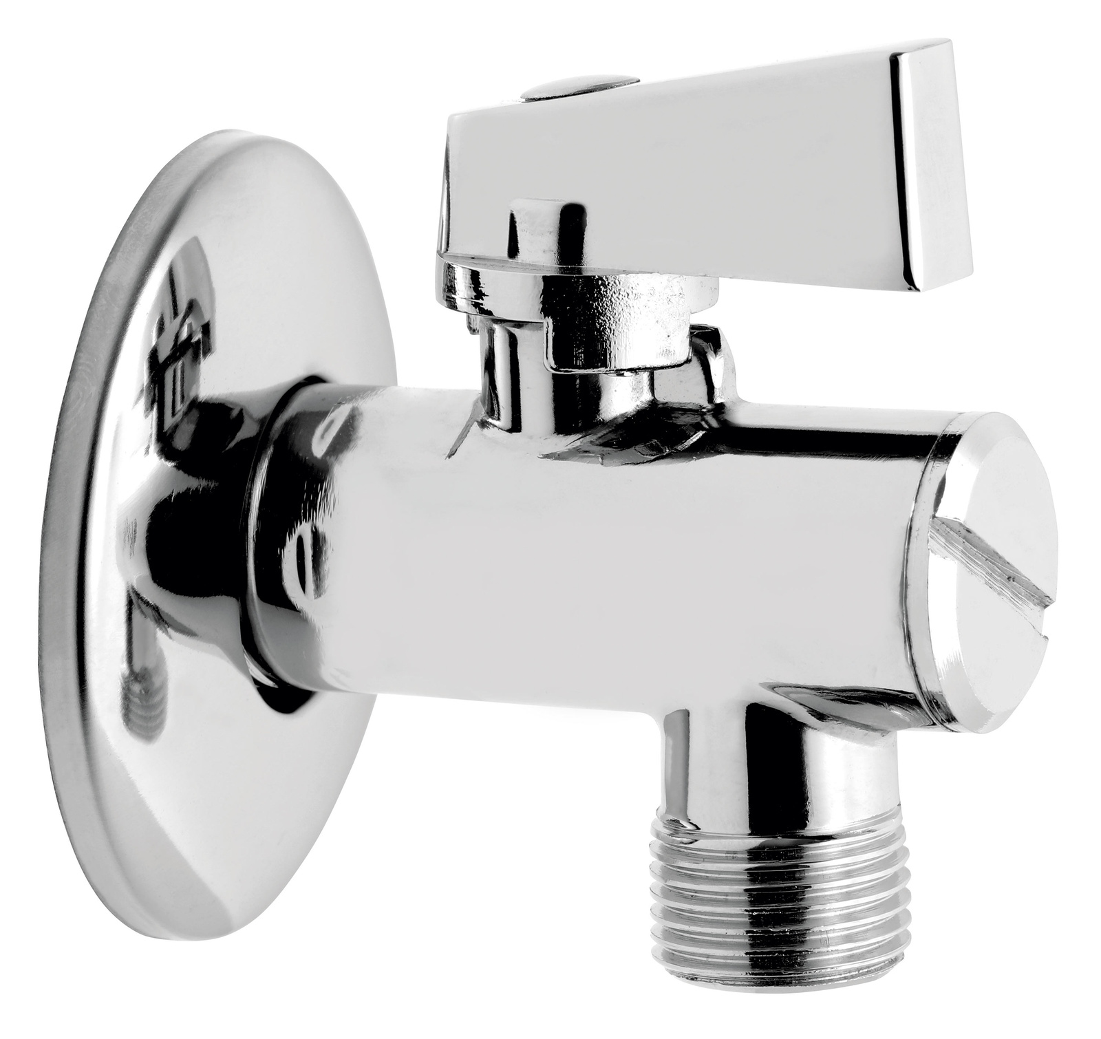 Zawór kulowy kątowy z rozetą i filtrem, z metalowym uchwytem 1-2" x 3-8"