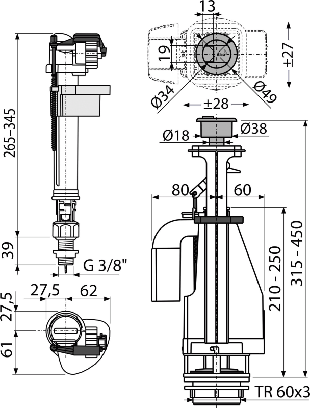 - Konstrukcja umożliwia optymalną regulację wysokości w zależności od wysokości zbiornika