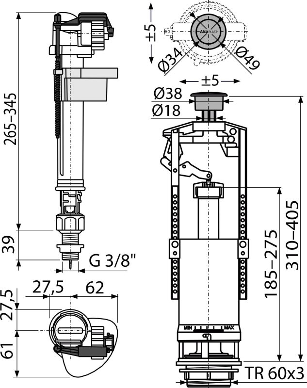 - Konstrukcja umożliwia optymalną regulację wysokości w zależności od wysokości zbiornika