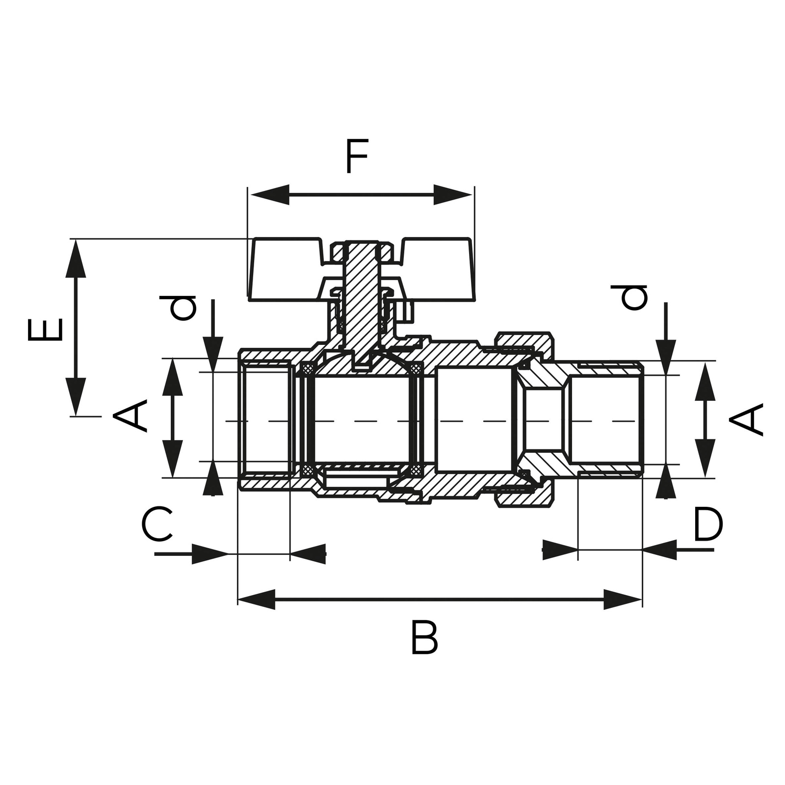 Zawór kulowy GW-GZ z motylkiem, ze śrubunkiem, 3-4", F-Power