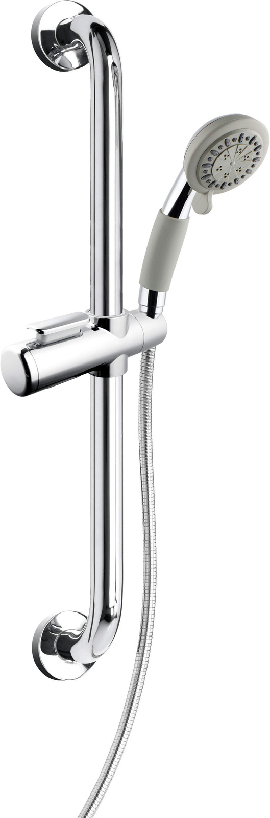 Kompletny zestaw prysznicowy został stworzony w nowoczesnym stylu i będzie ozdobą każdej łazienki. Proste, klasyczne linie oraz estetyczne wykończenie sprawiają, że doskonale się prezentuje w tradycyjnych, skandynawskich czy minimalistycznych wnętrzach. Użyte materiały, brak zakamarków oraz innowacyjny system przeciw osadowy Anti-Calc ułatwiają sprzątanie. Dzięki równomiernie rozstawionym dyszom kąpiący ma swobodę wyboru między trzema trybami pracy. Standardowy strumień to deszczowy, ale można także przełączyć się na inne tryby. To z kolei wpływa na niższe zużycie wody przy takim samym komforcie użytkownika. Dlatego uchwyt ścienny można określić jako 2 w 1. Montując łatwo jeden element, otrzymujesz dwie funkcjonalności oraz więcej przestrzeni w pomieszczeniu.
