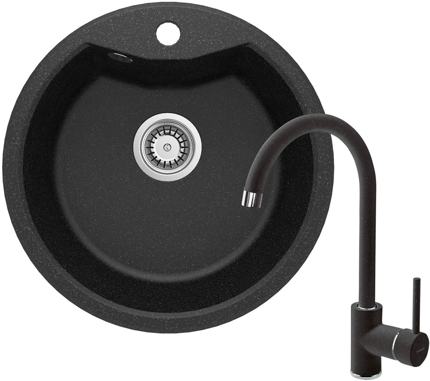Zlewozmywak granitowy z baterią 1-komorowy obrotowa grafit, chrom grafit Solis ZRSB2803