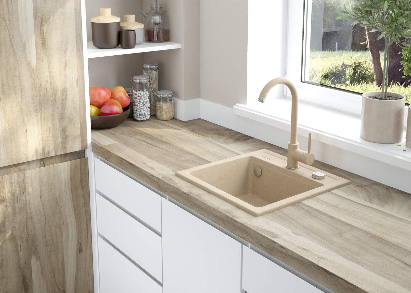 Zlewozmywak granitowy z baterią 1-komorowy obrotowa piasek piasek Zorba ZQZA7103
