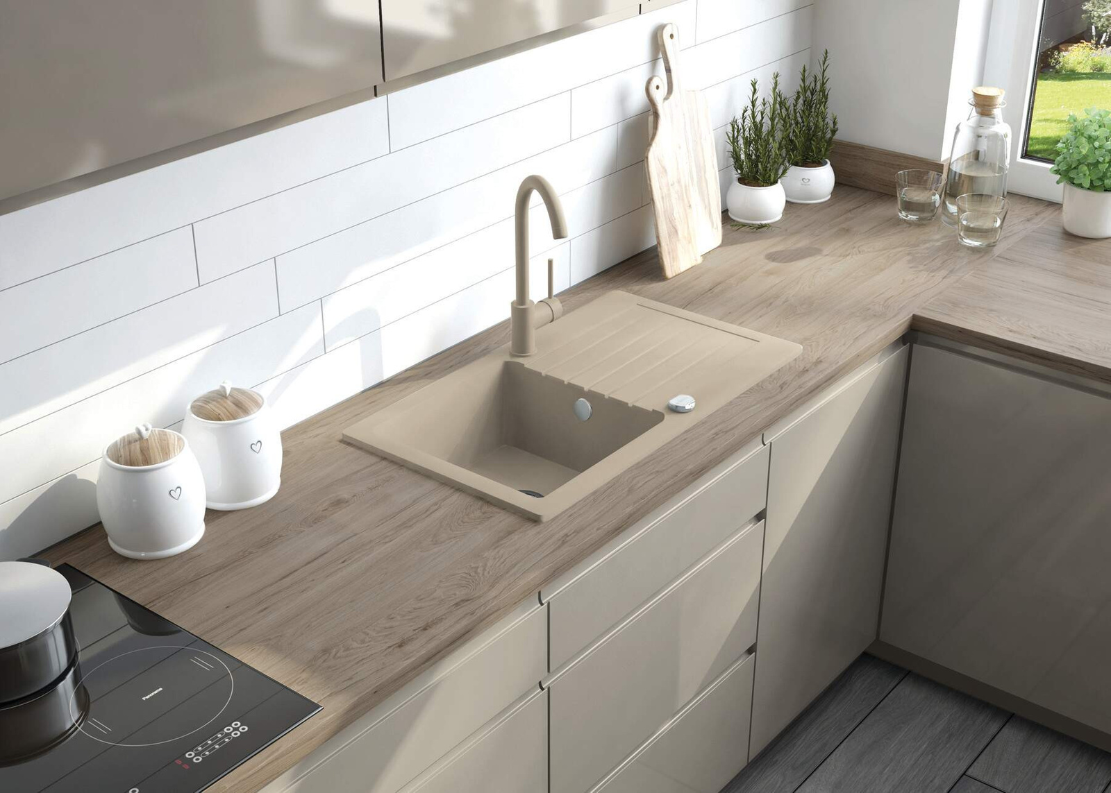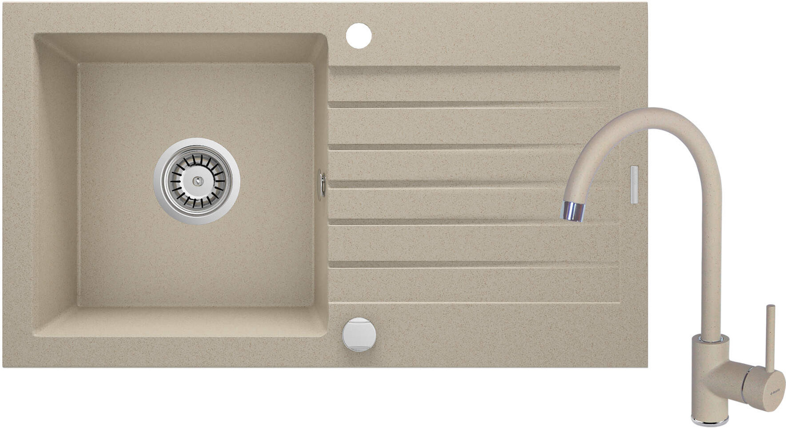 Zlewozmywak granitowy z baterią 1-komorowy z ociekaczem obrotowa piasek piasek Zorba ZQZV7113