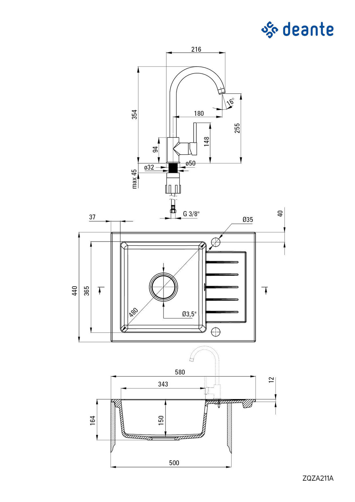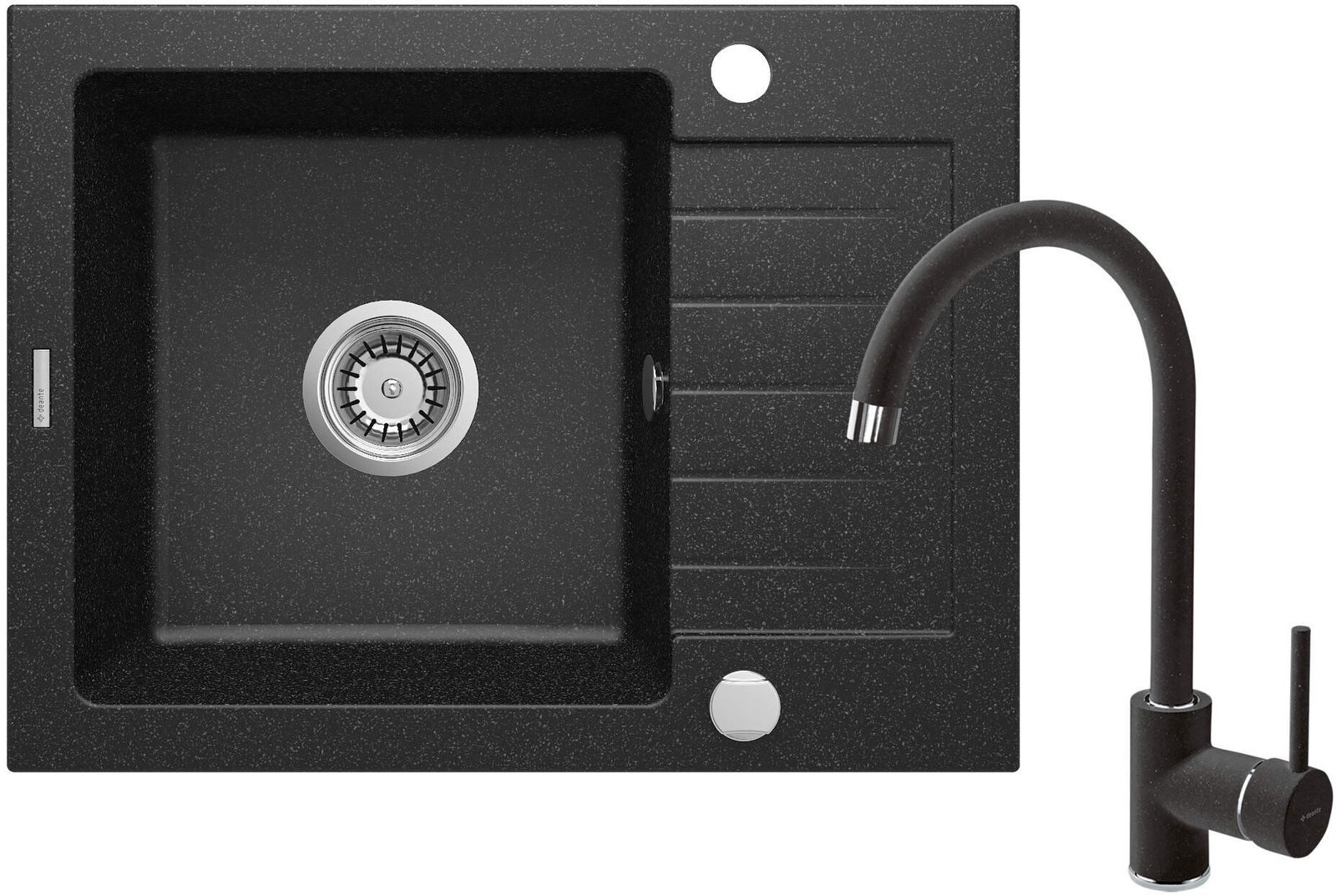 Zlewozmywak granitowy z baterią 1-komorowy z ociekaczem obrotowa grafit, chrom grafit Zorba ZQZA211A