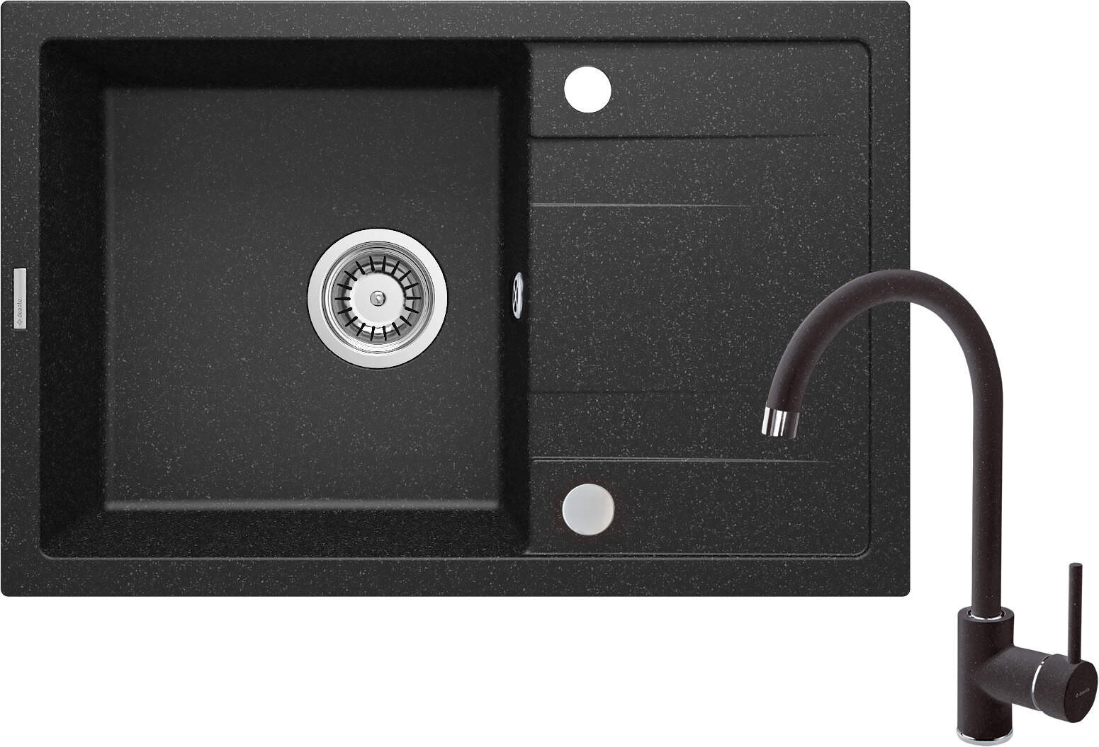 Zlewozmywak granitowy z baterią 1-komorowy z ociekaczem obrotowa grafit, chrom grafit Corio ZRCA2113