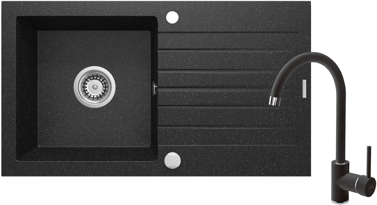 Zlewozmywak granitowy z baterią 1-komorowy z ociekaczem obrotowa grafit, chrom grafit Zorba ZQZV2113