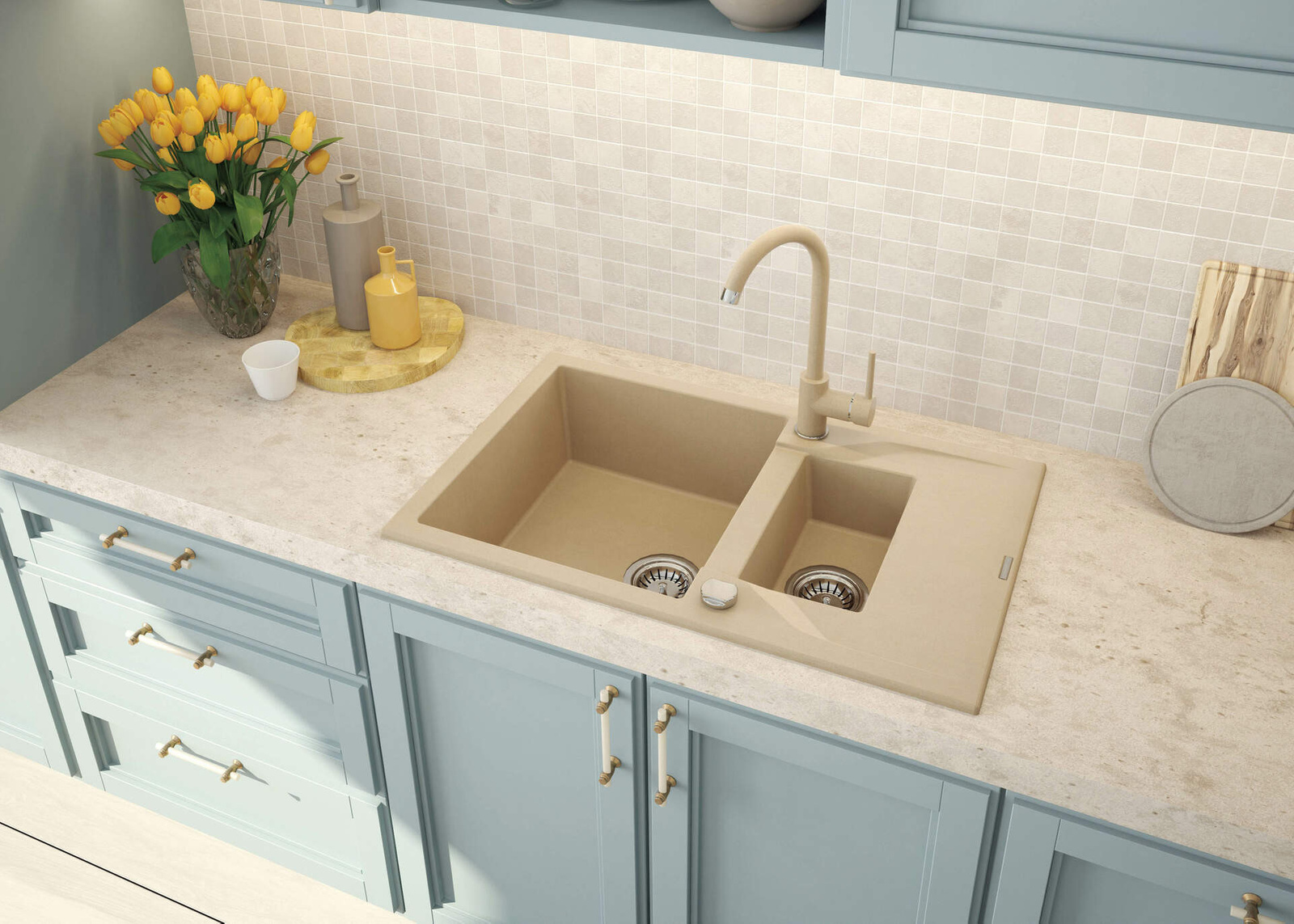 Zlewozmywak granitowy 1.5-komorowy z ociekaczem piasek stal ZQN 7513