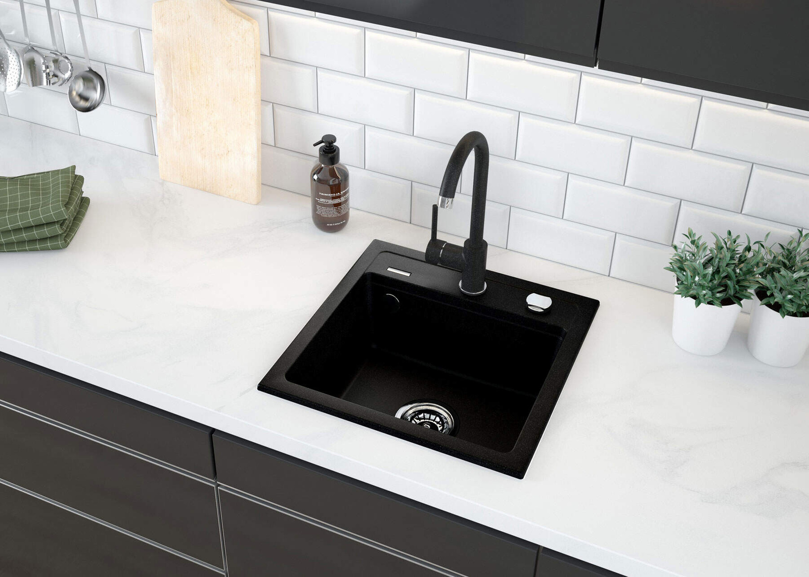 Zlewozmywak granitowy 1-komorowy nero stal ZQZ N103