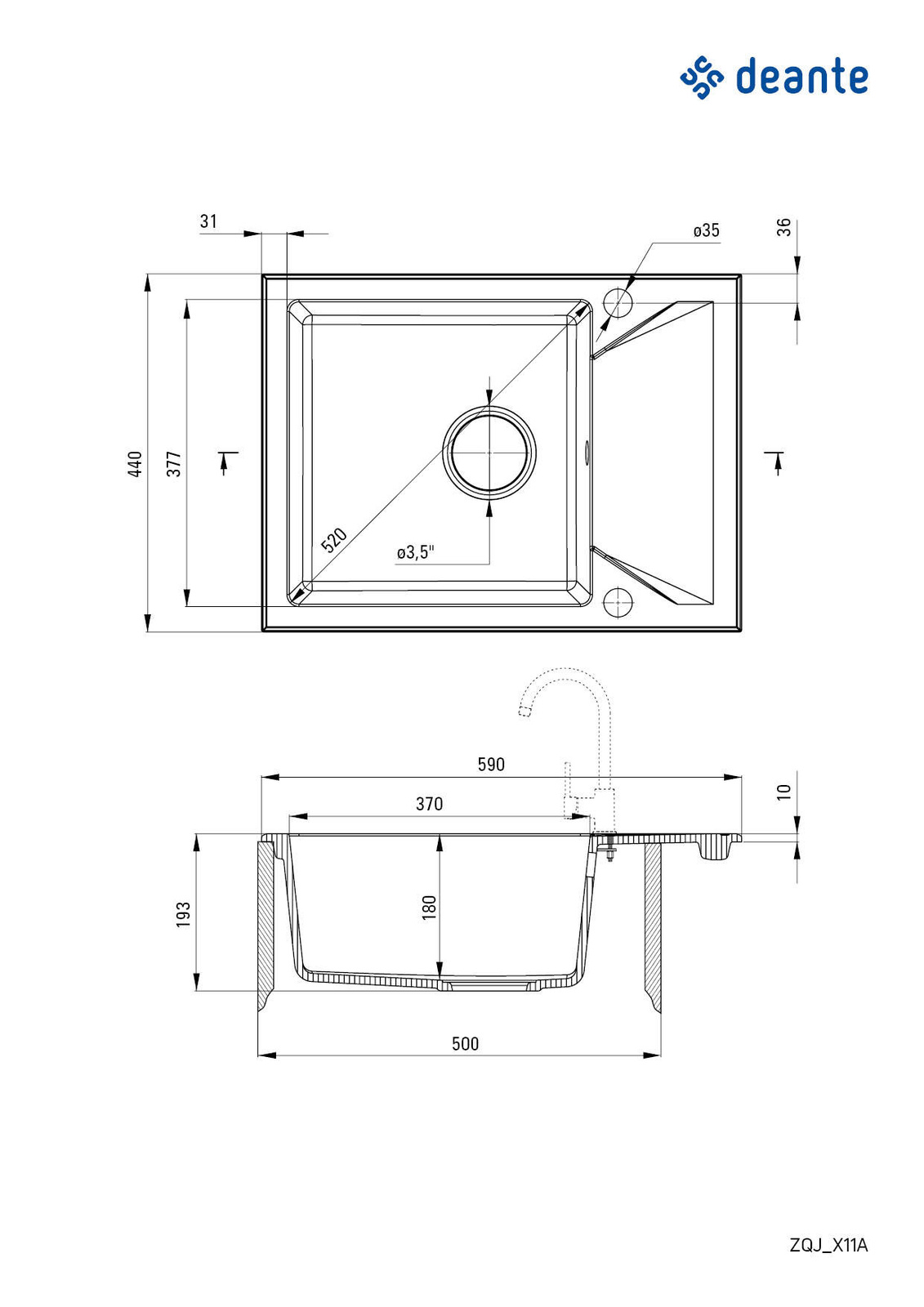 Zlewozmywak granitowy 1-komorowy z ociekaczem grafit metalik nero ZQJ G11A