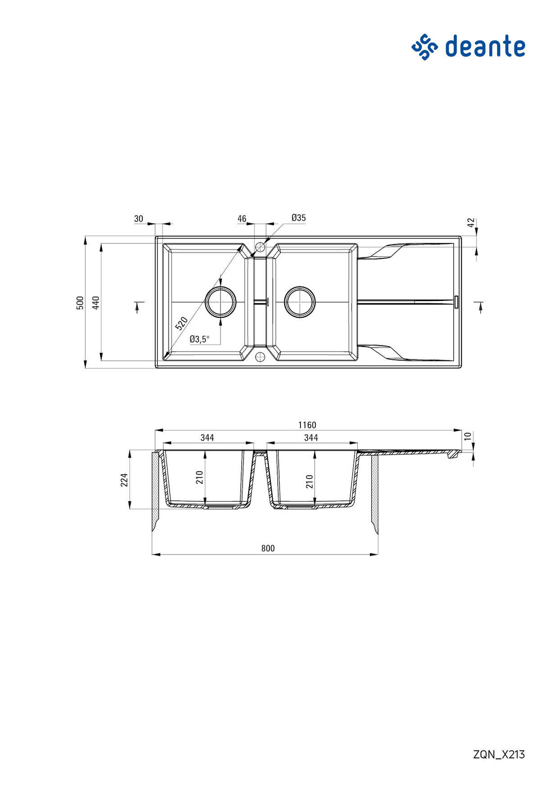 Zlewozmywak granitowy 2-komorowy z ociekaczem antracyt metalik stal ZQN T213