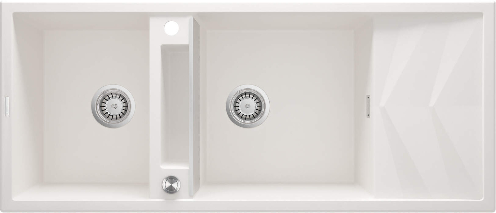 Zlewozmywak granitowy magnetyczny 2-komorowy z ociekaczem alabaster stal ZRM A213