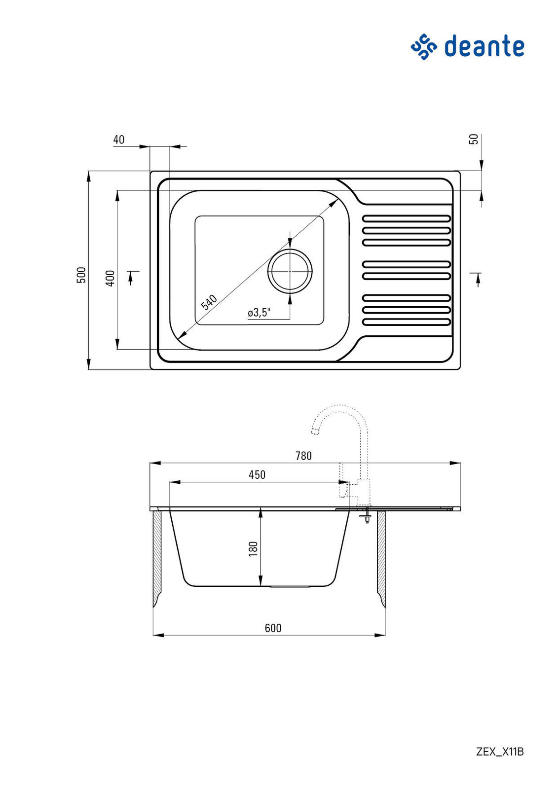 Zlewozmywak stalowy 1-komorowy z ociekaczem dekor stal ZEX 311B