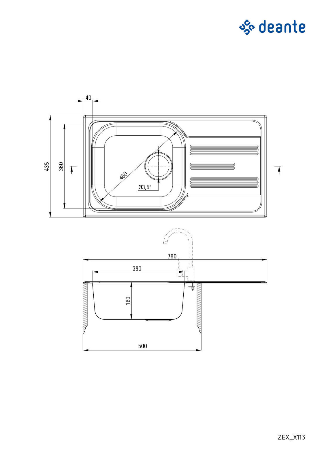 Zlewozmywak stalowy 1-komorowy z ociekaczem satyna stal ZEX 0113
