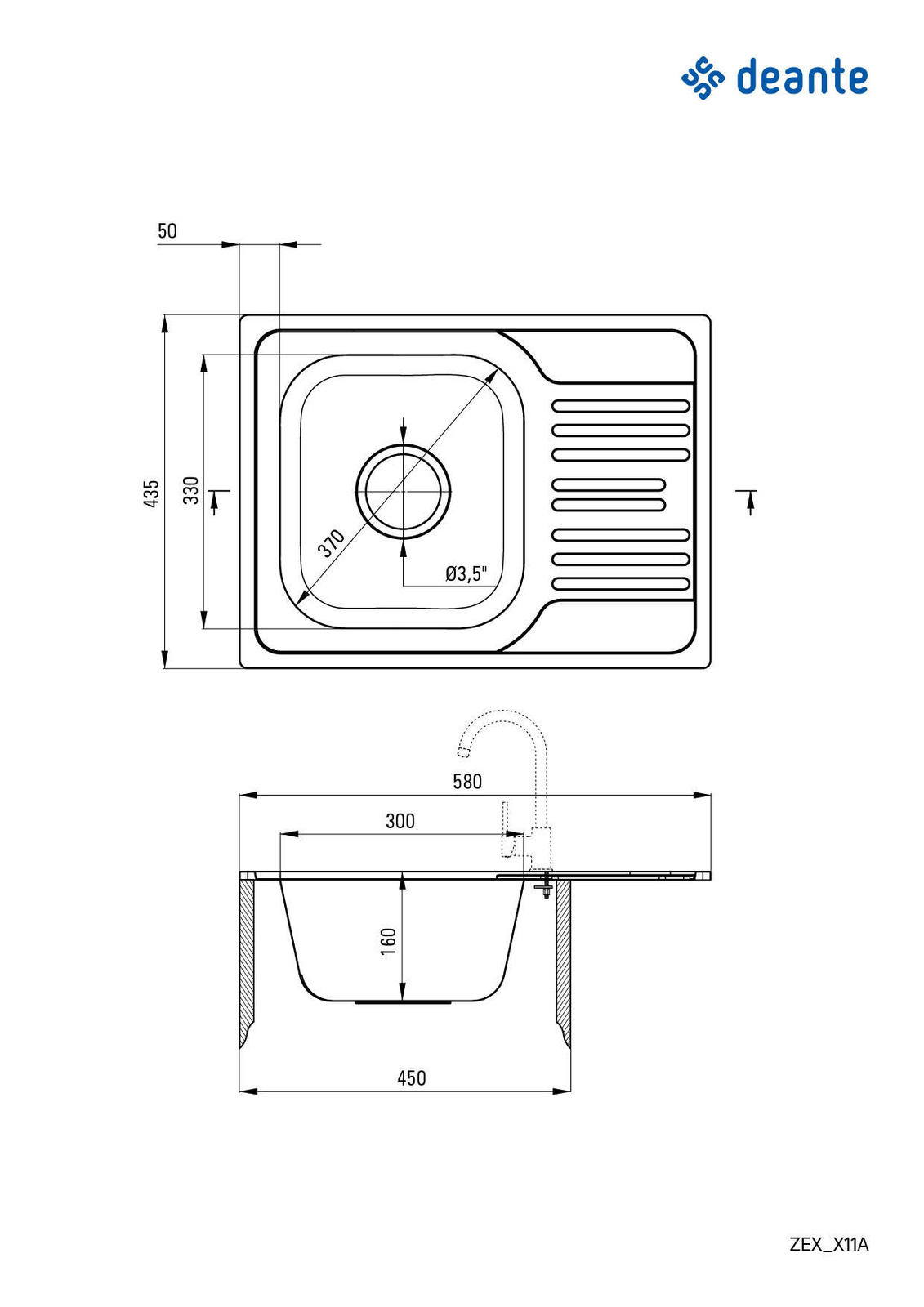 Zlewozmywak stalowy 1-komorowy z ociekaczem satyna stal ZEX 011A