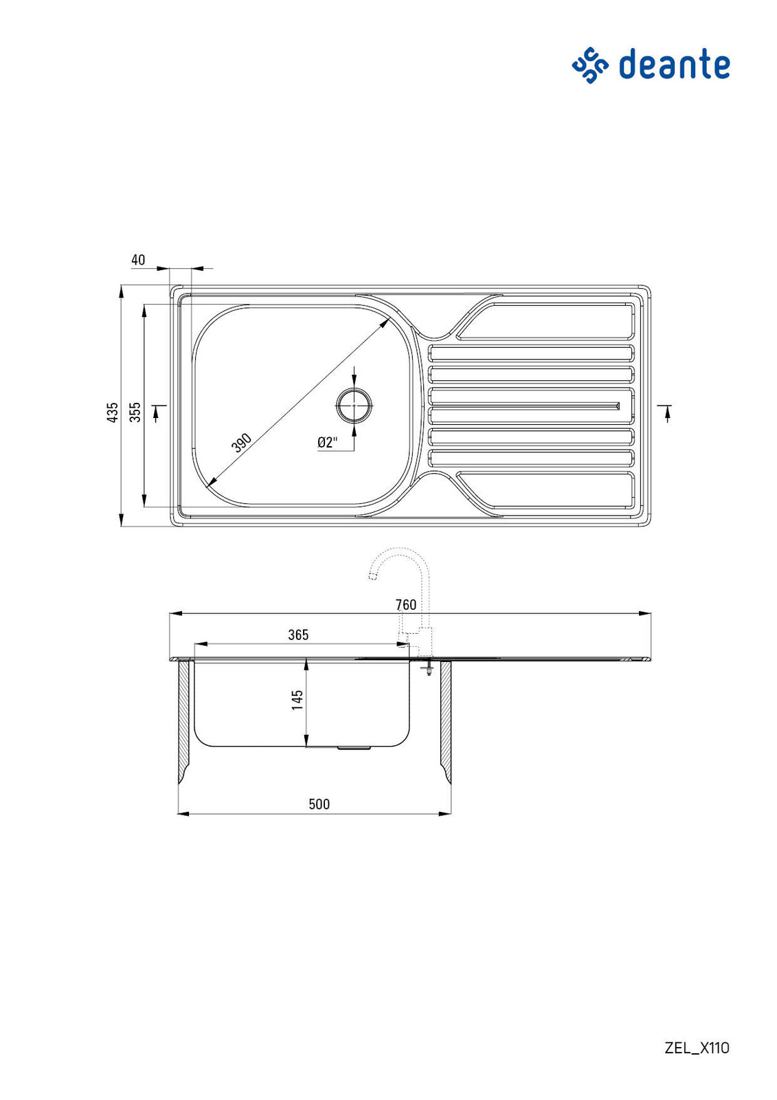 Zlewozmywak stalowy 1-komorowy z ociekaczem - odpływ 2" satyna stal ZEL 0110