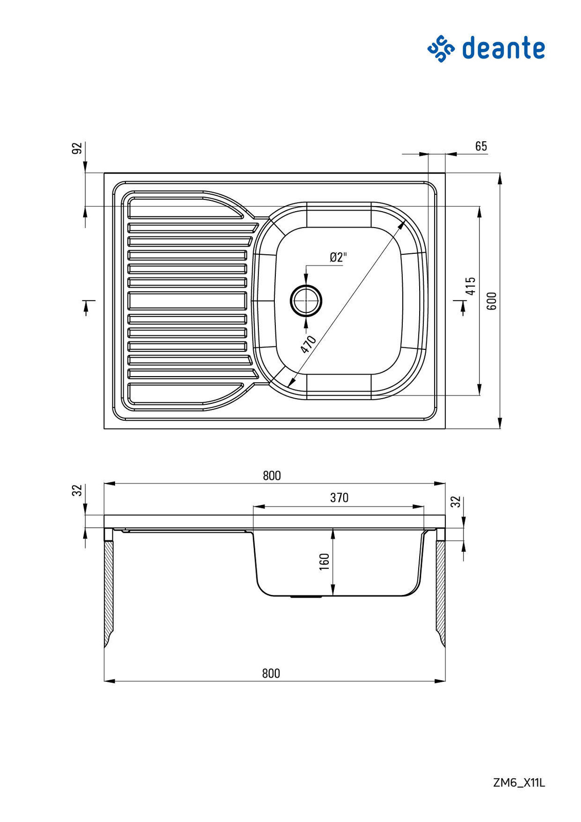 Zlewozmywak stalowy 1-komorowy z ociekaczem po lewej stronie - nakładany dekor stal ZM6 311L