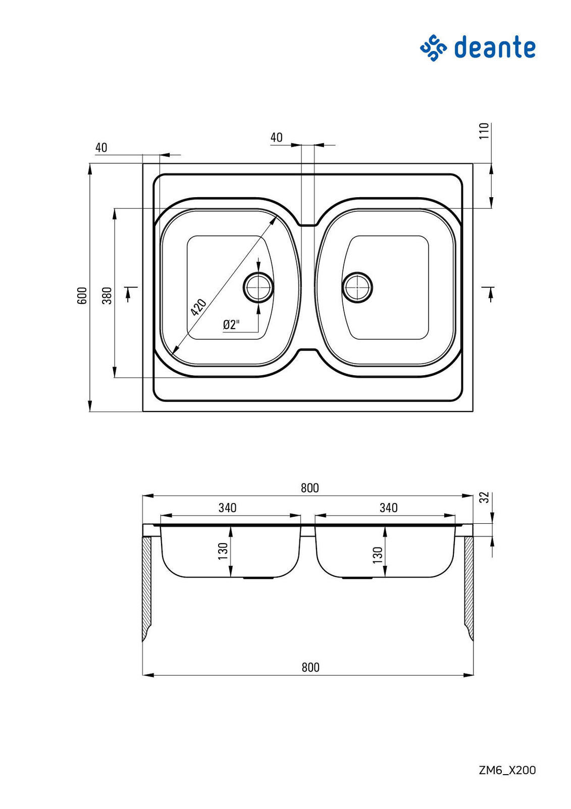 Zlewozmywak stalowy 2-komorowy - nakładany satyna stal ZM6 0200