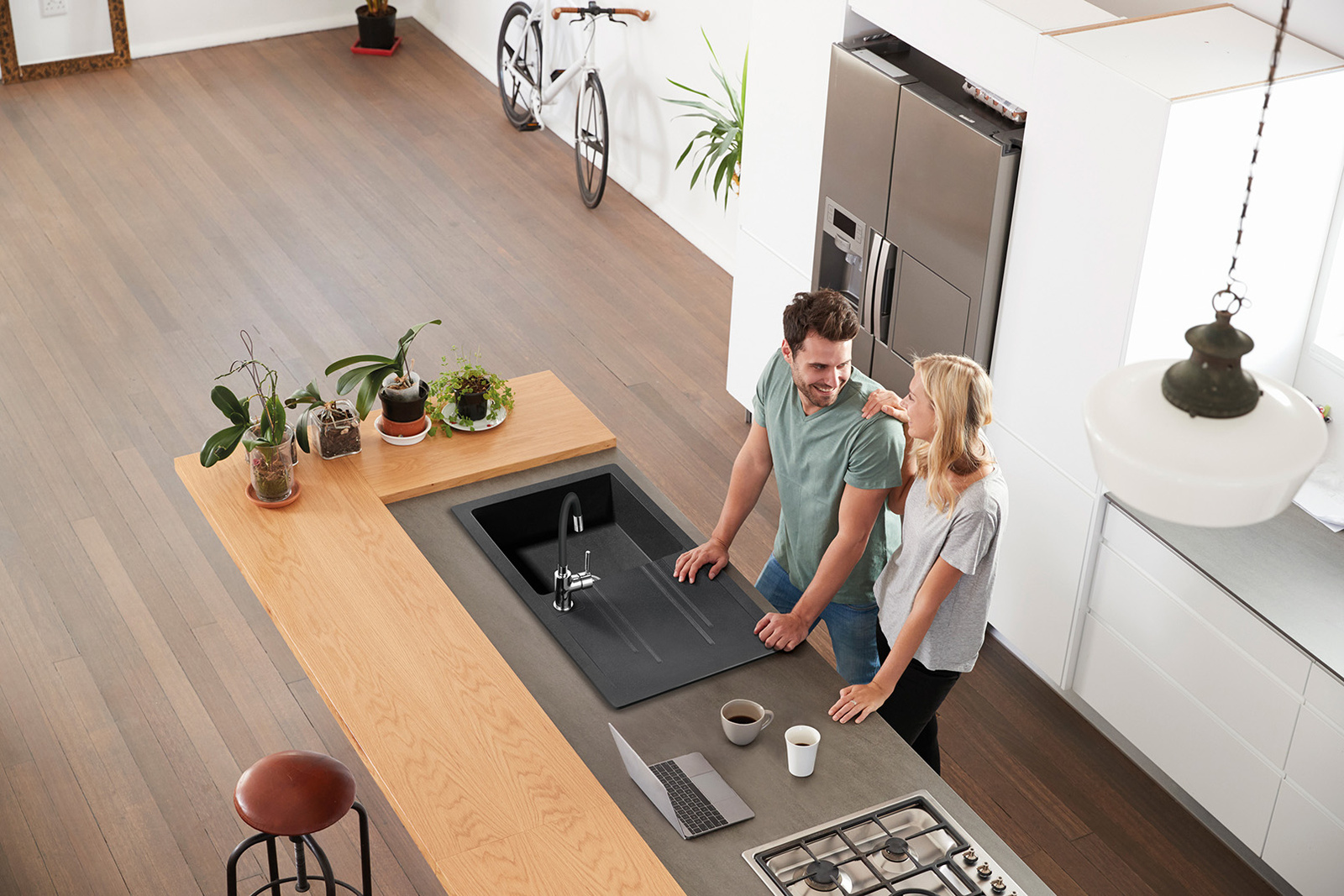 MEZZO II zlewozmywak granitowy 1-komorowy 48/78, grafit